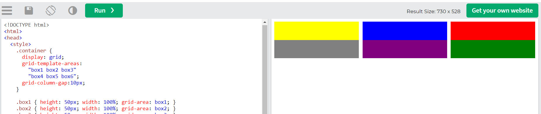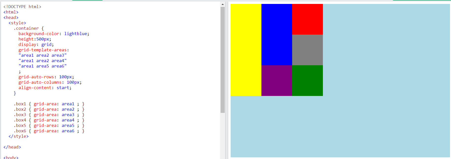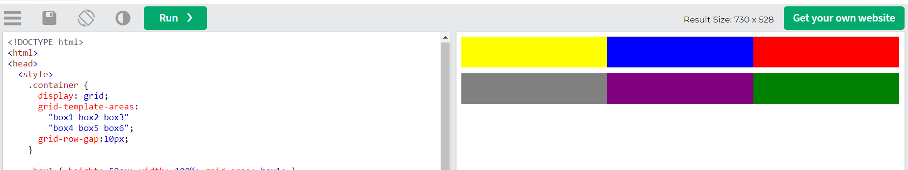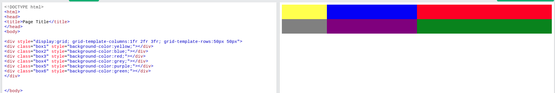 <div style="display:grid; grid-template-columns:50px 50px 50px; grid-template-rows:50px 50px">