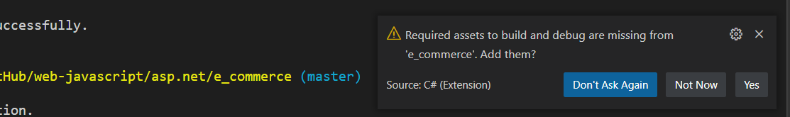 ※ Unlike its big brother VS Code needs additional steps to add tools to use some of the features that working with C# easier such as debugging. Enter '.NET: Generate Assets for Build and Debug' in the search bar on top.
