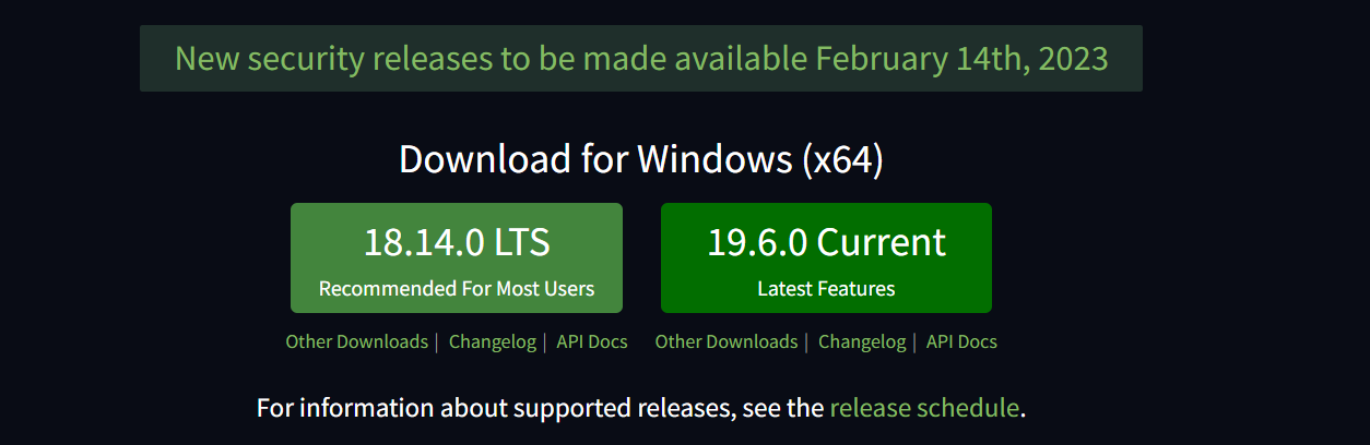 LTS 버전을 선택 (current 버전이 최신버전이긴 하지만 베타버전이라 안정성이 떨어짐)