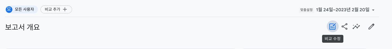 먼저, 모든 보고서 (실시간 제외)에 공통적용되는 GA4 보고서에서 제공하는 공통기능들을 먼저 살펴보겠습니다.