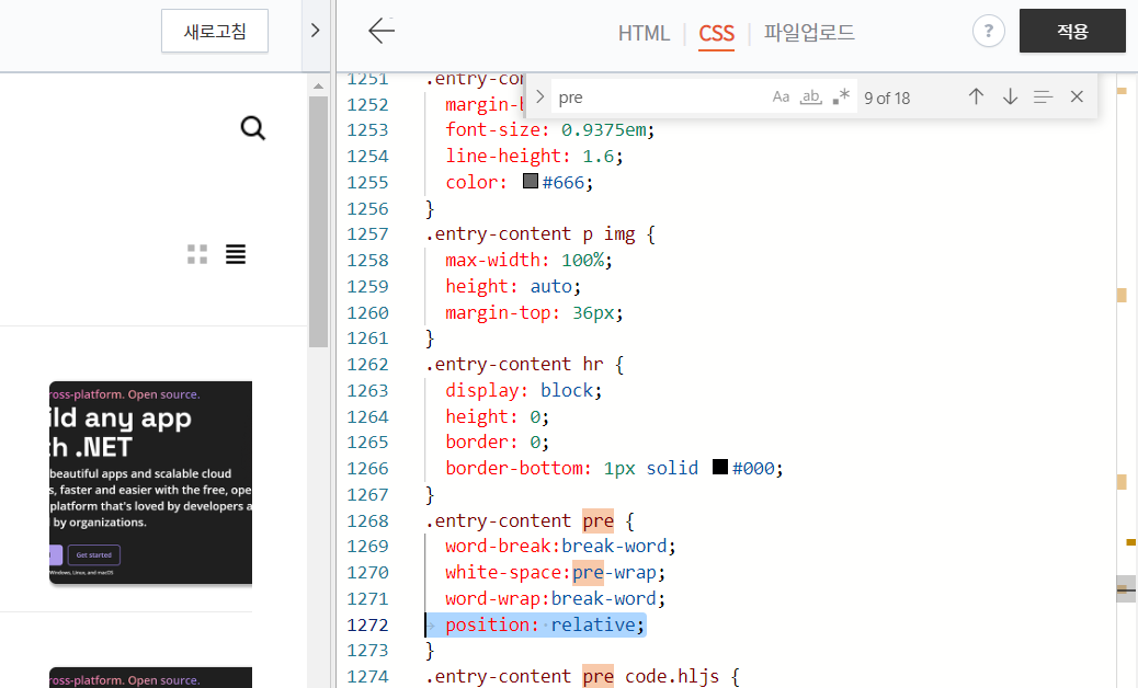 Open the CSS file and add the style below to the 'pre' element which is the container of the code element