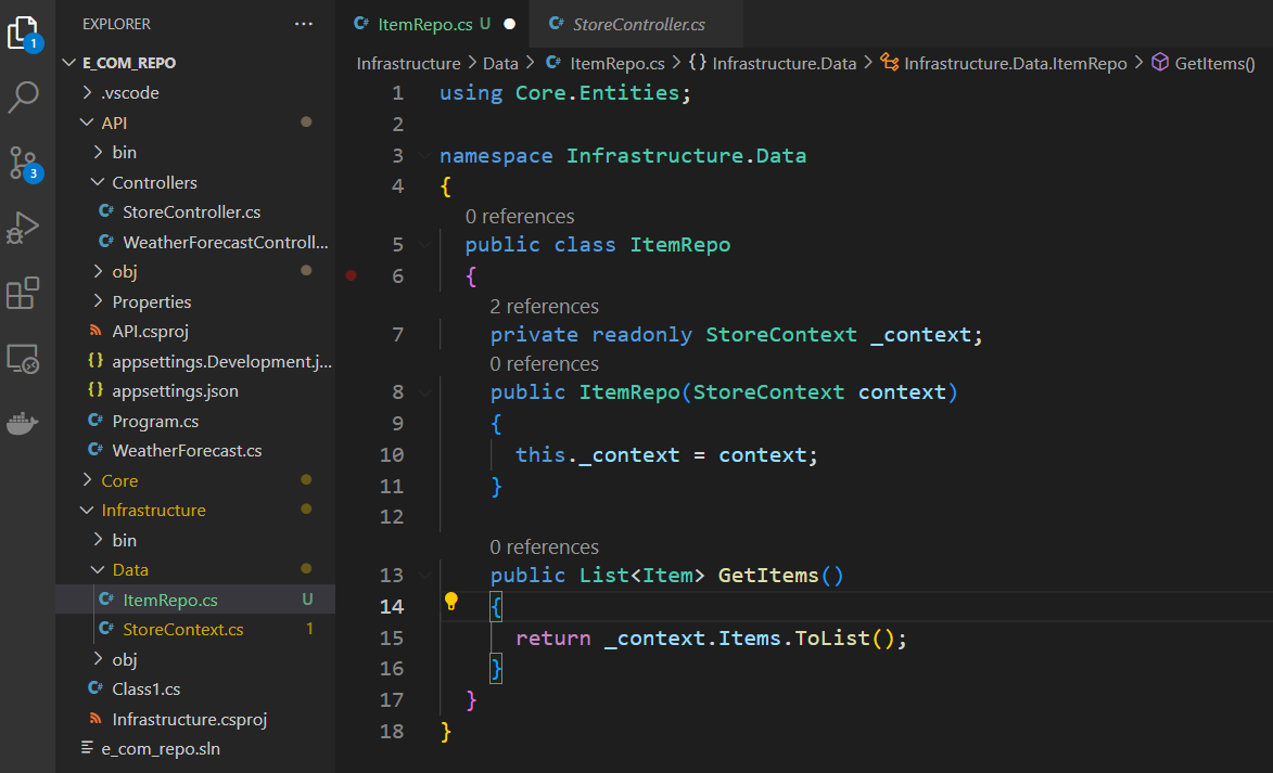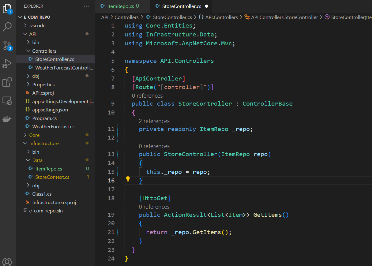 It is a good practice to separate business logic and data handling. Entity Framework provides an MVC pattern to separate them. However, as the size of a project grows, adding data handling codes directly in the controller file creates duplicate codes and becomes hard to test. A repository pattern is a design pattern that reduces duplication and makes testing easier. Let's see how we can implement a repository pattern in this writing