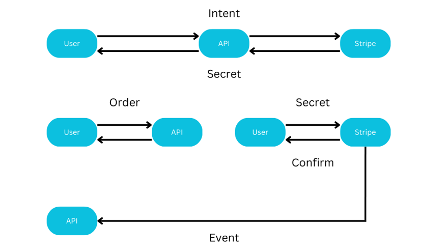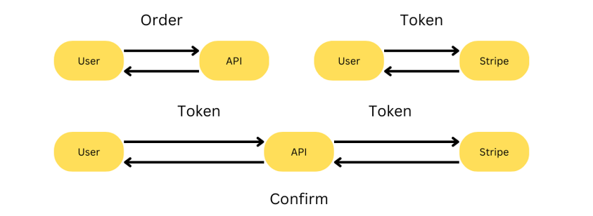 일반 기준의 결재는 서버에 대한 유저의 구매요청이 성공적인 경우 스트라이프에서 토큰을 생성해서 유저에게 보내주고 유저는 해당 토큰을 서버를 거쳐 다시 스트라이프로 전송하여 일치하는 경우 완료됩니다.