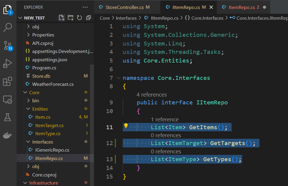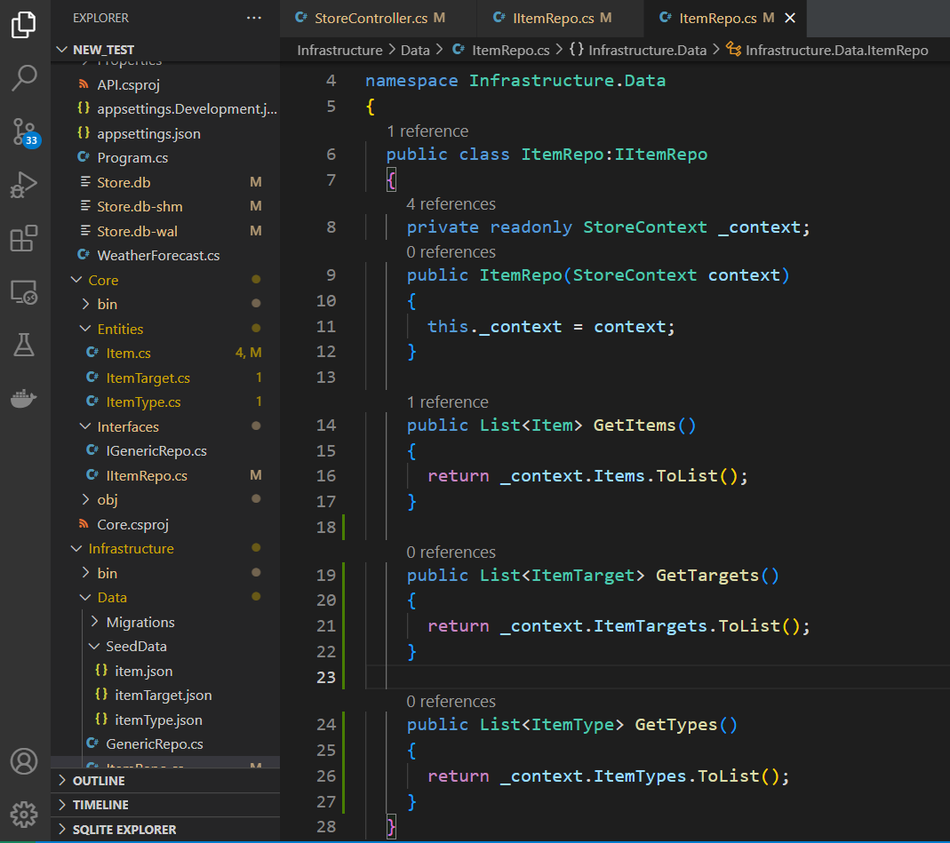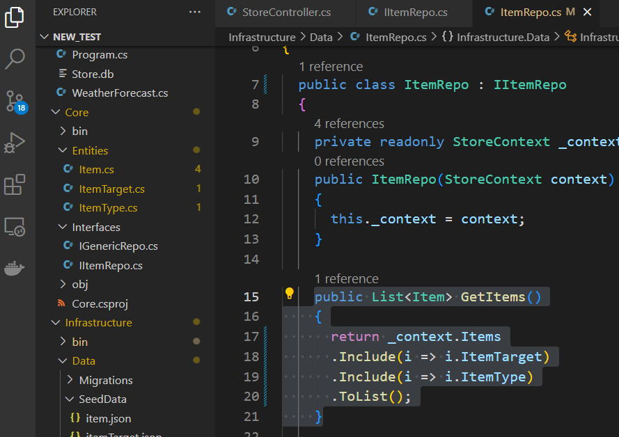 데이터를 요청하는 메서드가 구현된 레포지토리로 이동하여 엔티티 프레임워크 네임스페이스를 레포지토리 폴더에 추가하고