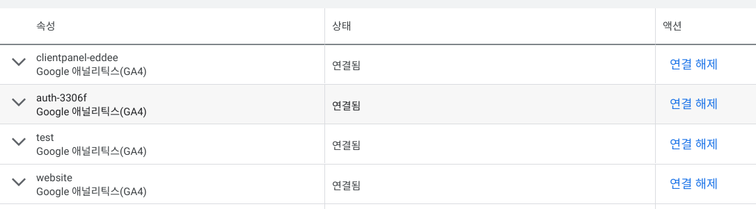 같은 지메일 계정 아래의 GA4 속성 목록이 뜨는데, 연결하고자 하는 속성의 '링크'를 누릅니다.