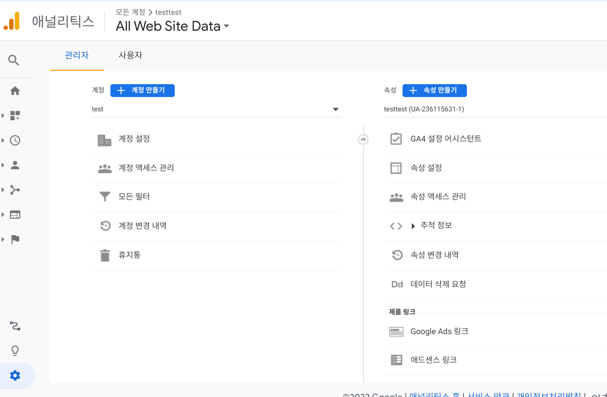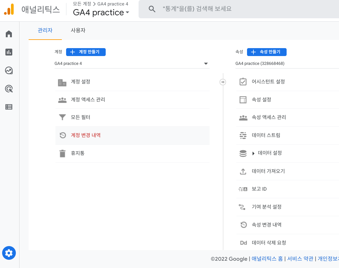 해당 GA4계정에서 좌측 하단에 '관리'를 선택