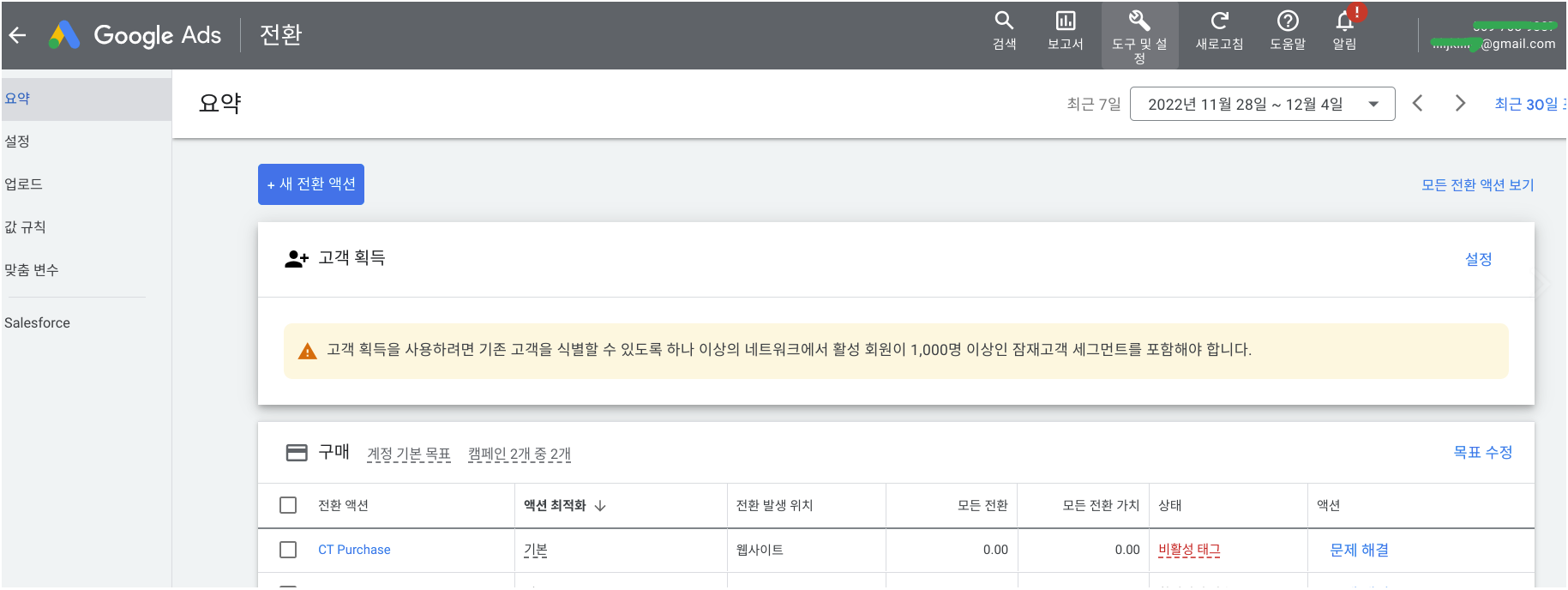 - 페이지 뷰 이벤트만 가능 - 애즈 전환 요약 페이지에 전환 고유 라벨값이 표시되지 않아 발생된 전환의 식별이 어려움 |