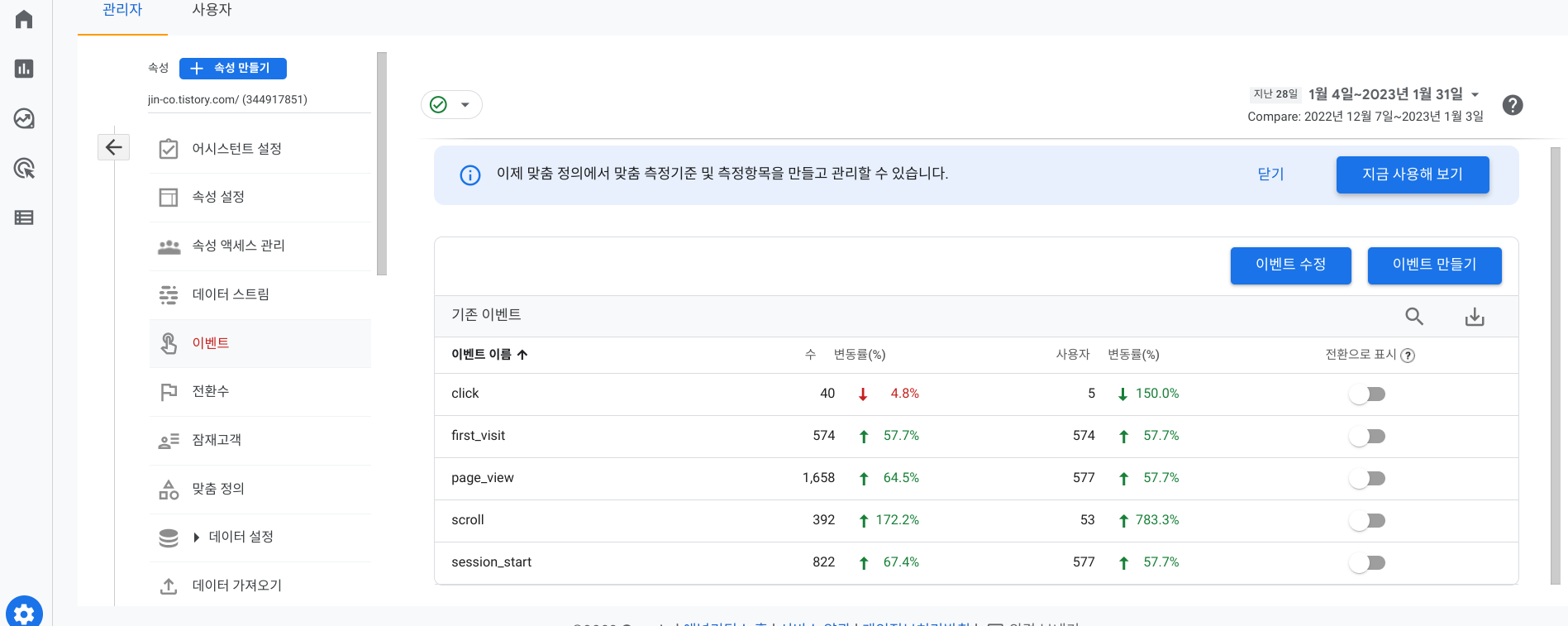 구글 애널리틱스 GA4 수동생성된 이벤트 보고서 누락?