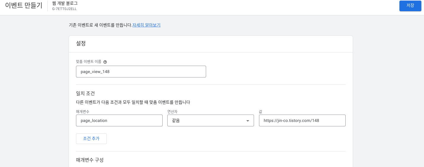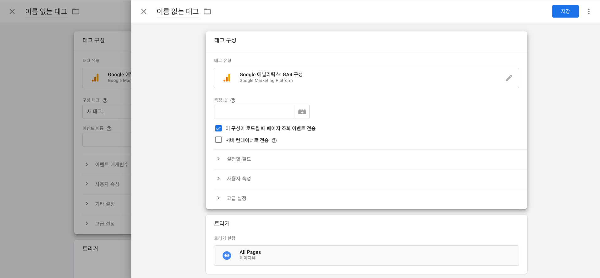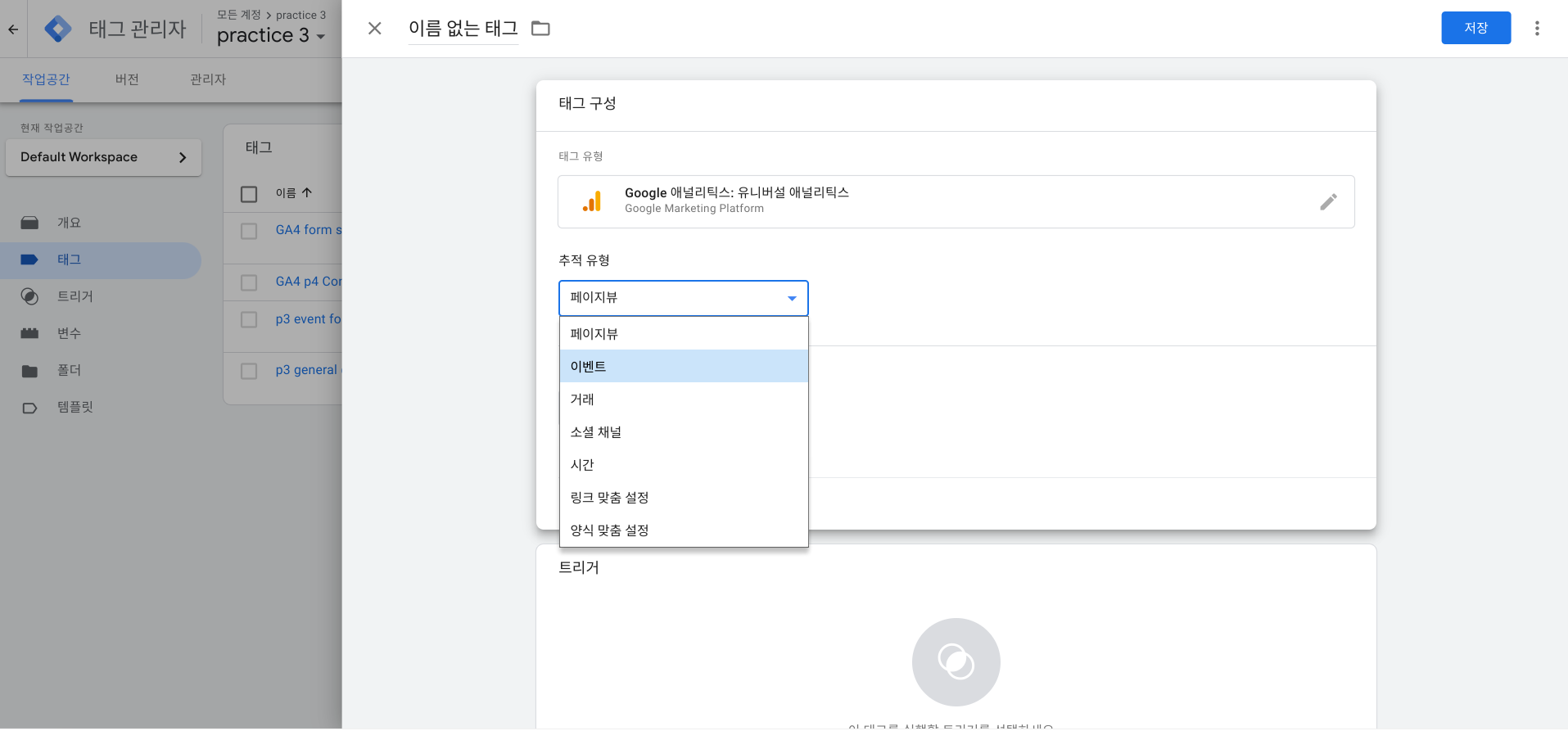 추적하고자 하는 이벤트의 트리거를 설정 후 '저장'