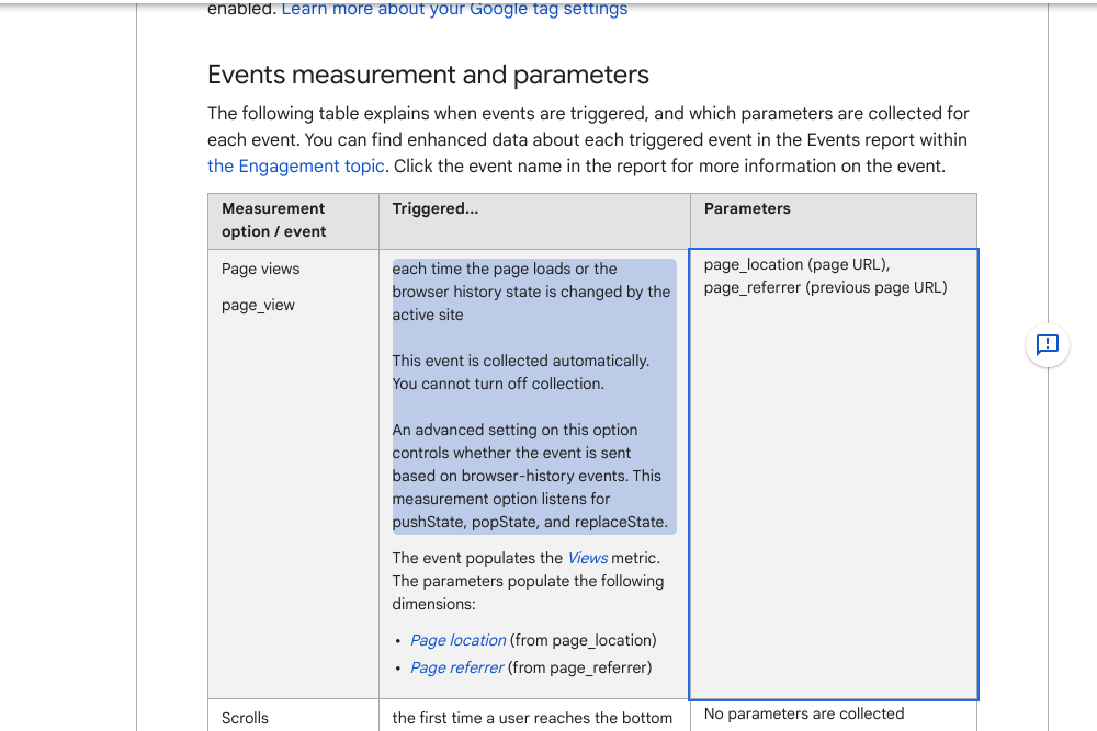 페이지 이벤트의 경우 page_location 매개변수를 활용가능한데