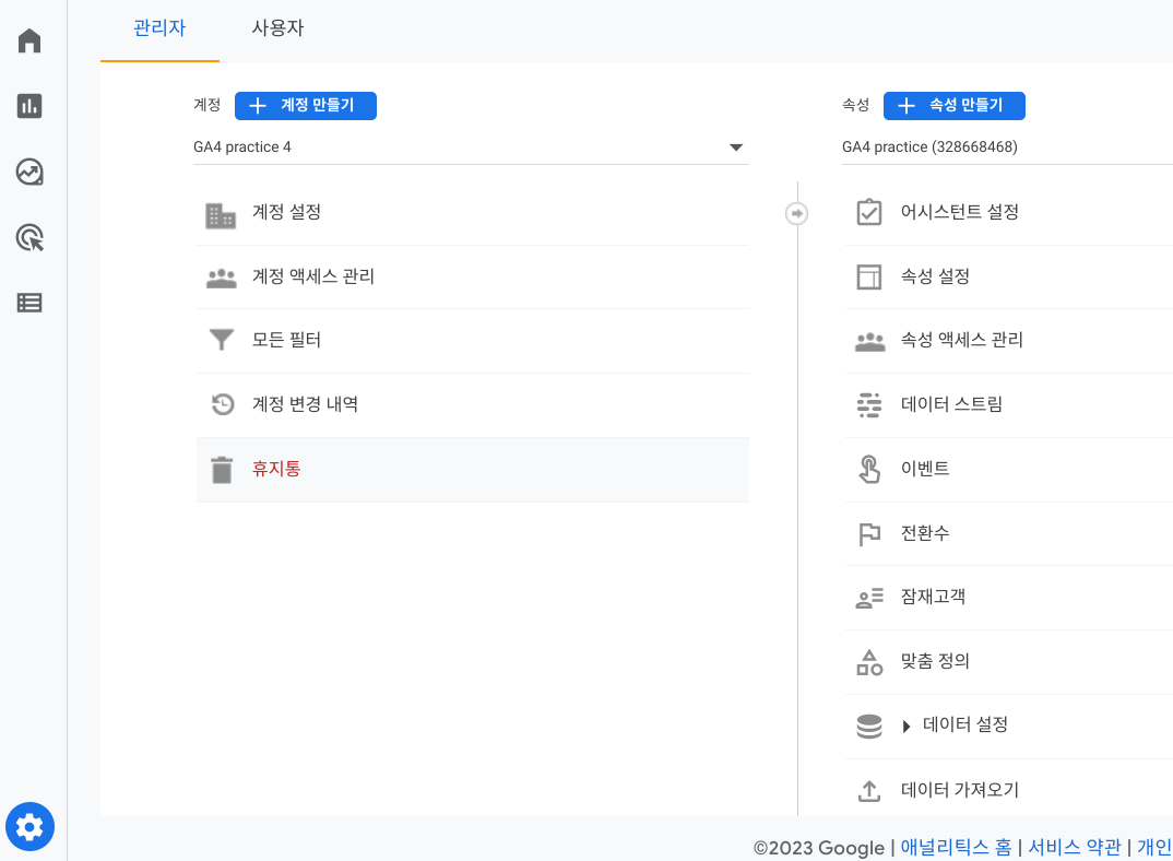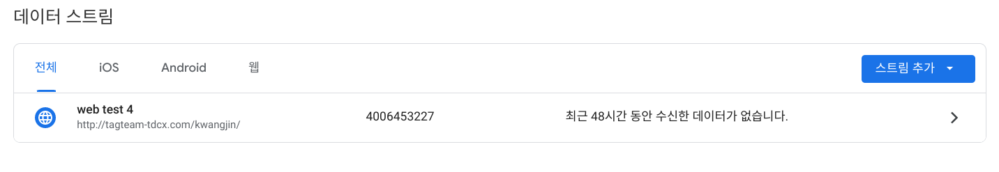 좌측메뉴 하단에 '관리' 선택 후 속성에서 '데이터 스트림' 선택