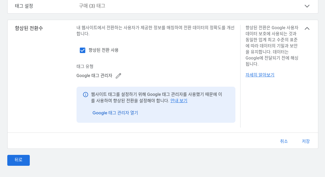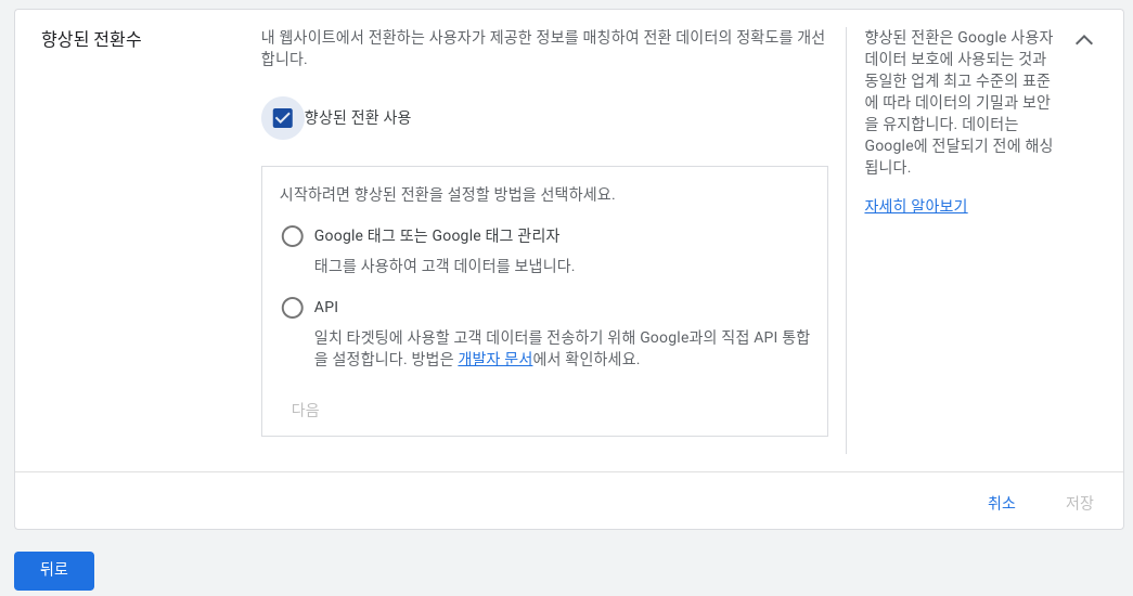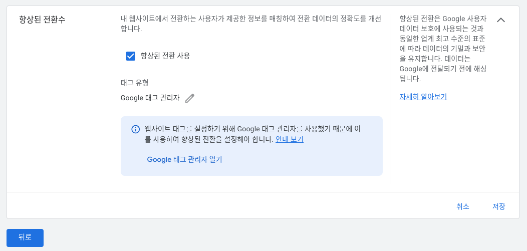 구글 향상된 전환 (향상된 전환 설정)