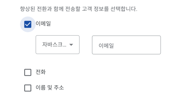 추가로 보낼 정보는 전환이 일어나는 시점에 존재해야 하는데요. 향상된 전환으로 설정하기 위해 추가로 보낼 수 있는 정보는 다음과 같습니다.