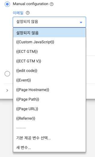 이메일 하단 박스 클릭 후 '새 변수' 선택