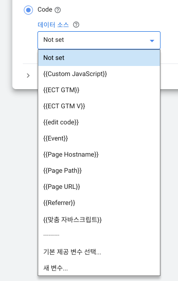 변수 구성 박스 클릭