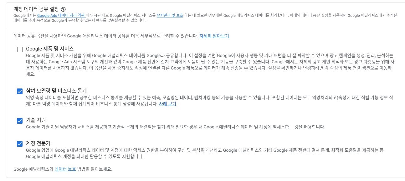 데이터 공유 설정 - 애널리틱스 고객센터