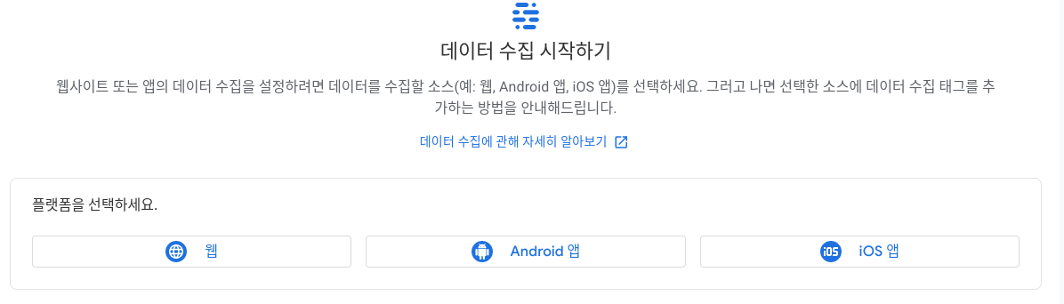 이후 데이터 수집의 소스가 되는 플랫폼 선택이 가능한데요 아래와 같이 세 종류로 나누어집니다.