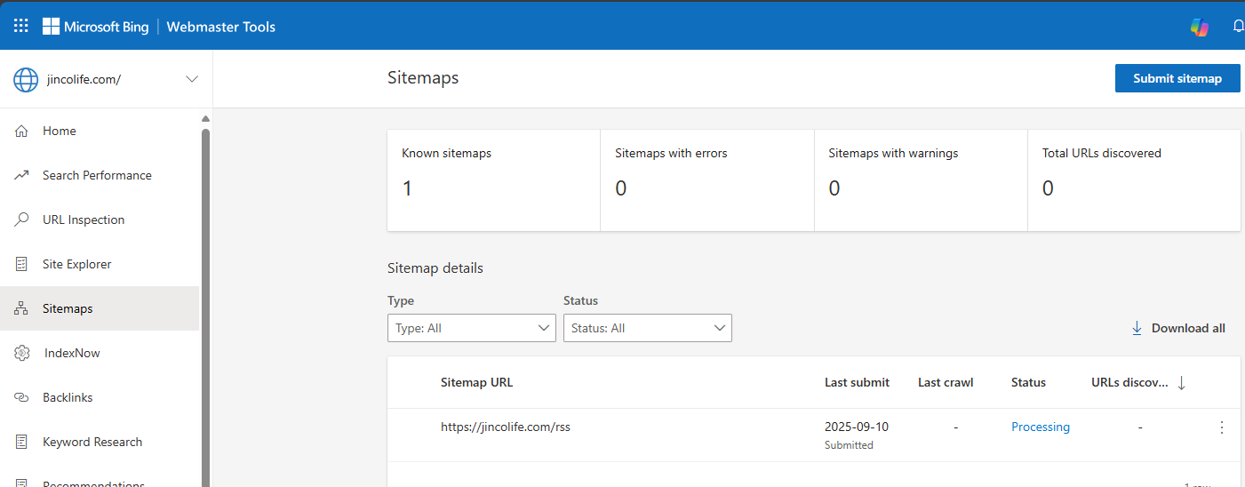 jincolife.com티스토리 블로그의 경우https://jincolife.com/rss주소를 사이트맵으로 제출했습니다. 빙은 RSS 피드도 사이트맵처럼 유연하게 처리하여 정상적으로 등록되었습니다. - 워드프레스 (