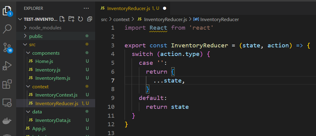Go to the context file and add import useReducer, add the data. Then initialize the reducer.