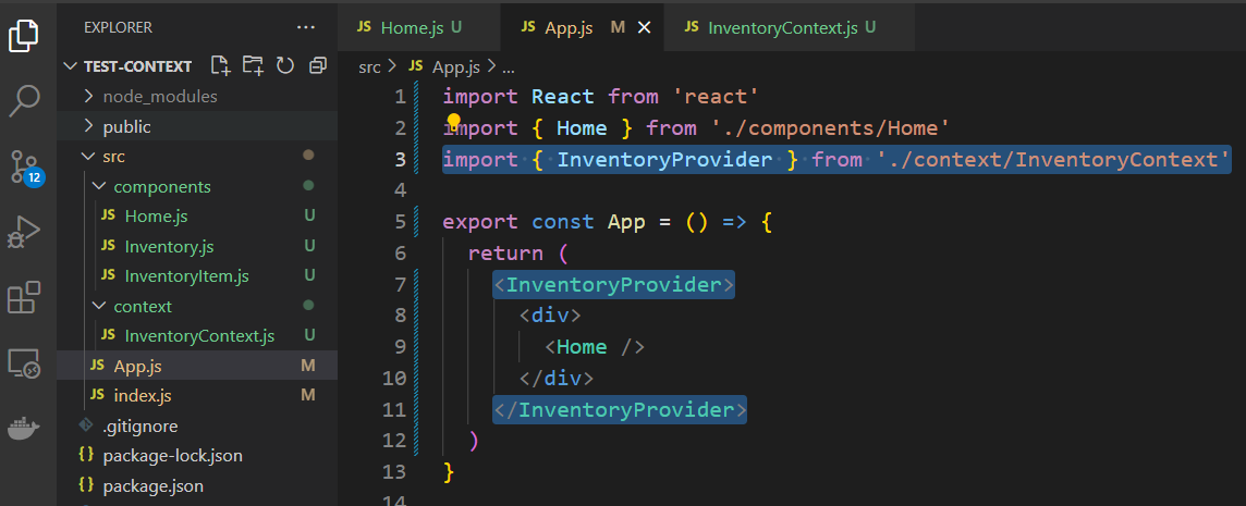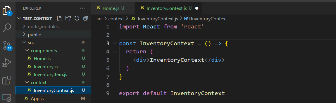 Let's see how we can use the useContext with the useState. Import the useState and initialize it