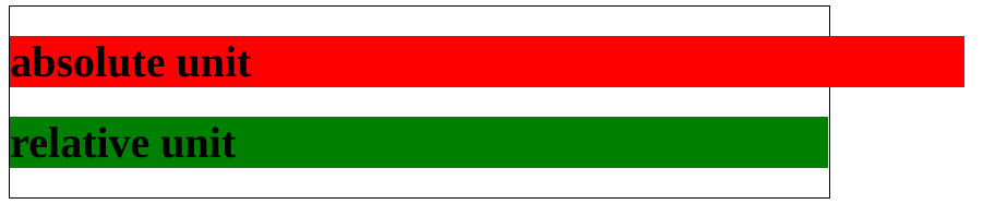 <h1 style="background-color: green; width:100%">relative unit</h1>