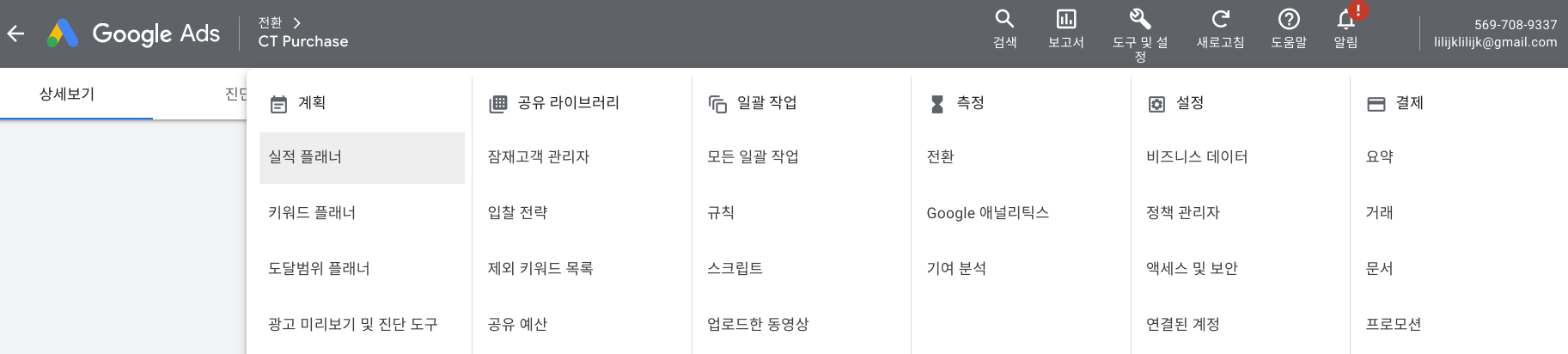 생성된 구글애즈 수동전환 설정 변경하기