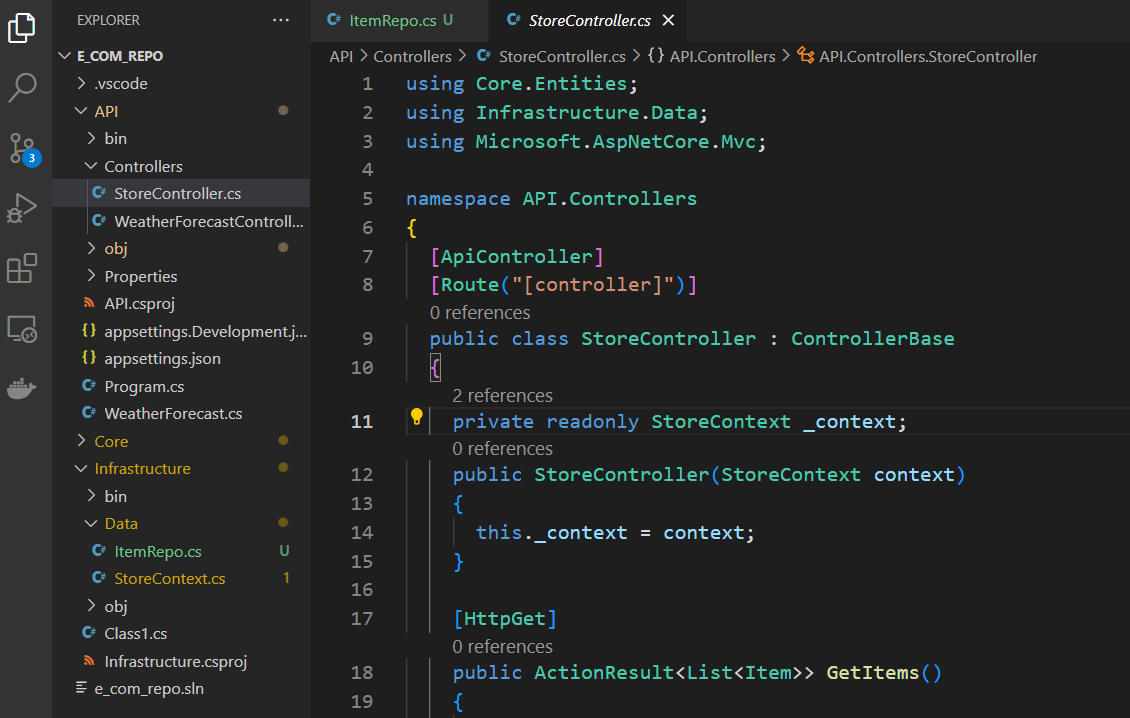 비즈니스 로직과 데이터를 처리하는 코드는 분산하는 것이 좋습니다. 엔티티프레임워크의 디비 콘텍스트 사용으로 두 코드의 분산은 가능하지만 프로젝트의 규모가 커지면 컨트롤러에서 디비 콘텍스트를 직접 사용하는 것보다 중간에 레포지토를 생성하여 사용하면 중복코드의 감소와 테스트가 쉬워지는 장점이 있는데요, 오늘은 레포지토리 패턴을 사용하여 애플리케이션을 구성하는 방법을 보겠습니다.