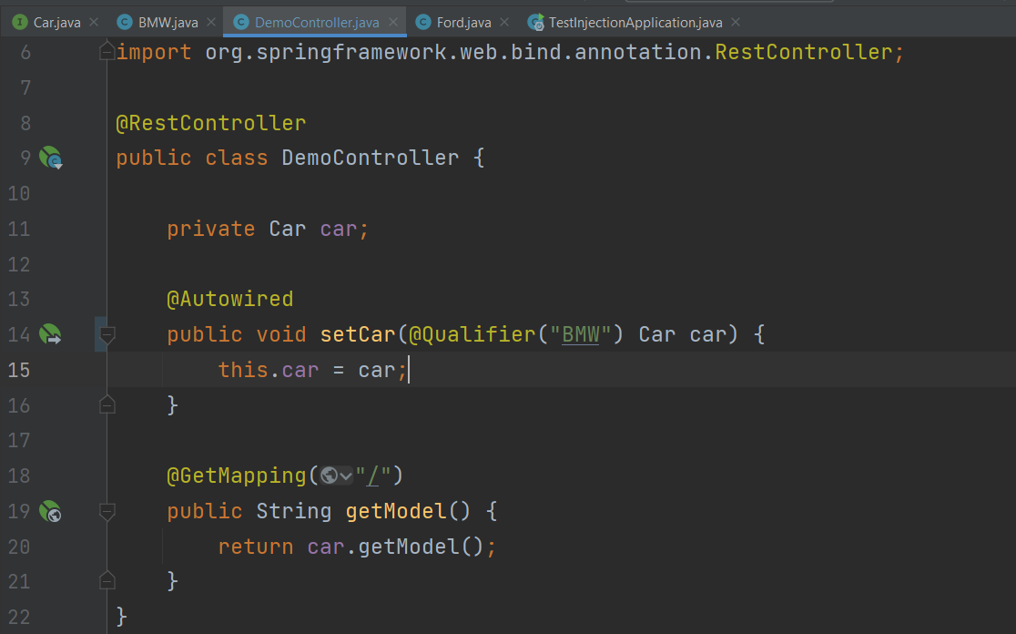 메서드 또는 세터를 생성하고 @Autowired 어노테이션 추가