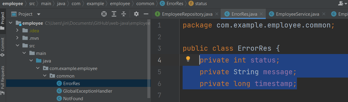 public ErrorRes(int status, String message, long timestamp) {