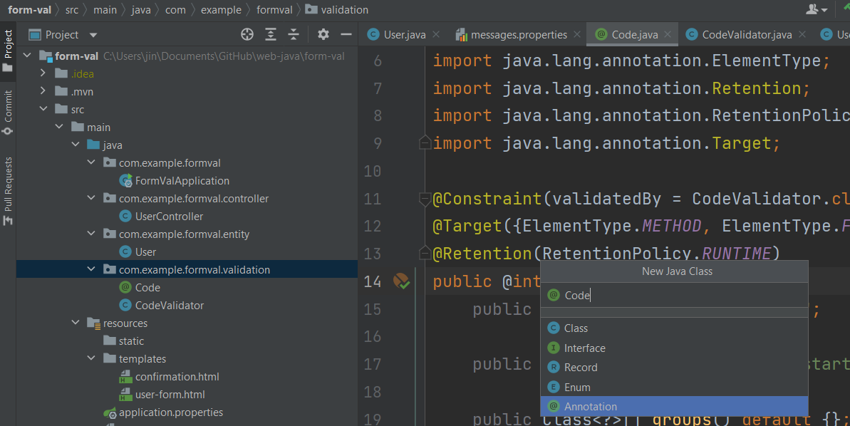 스프링 부트에서 폼을 통해 데이터를 전송하는 방법과 제약조건을 설정하는 방법을 살펴보겠습니다.