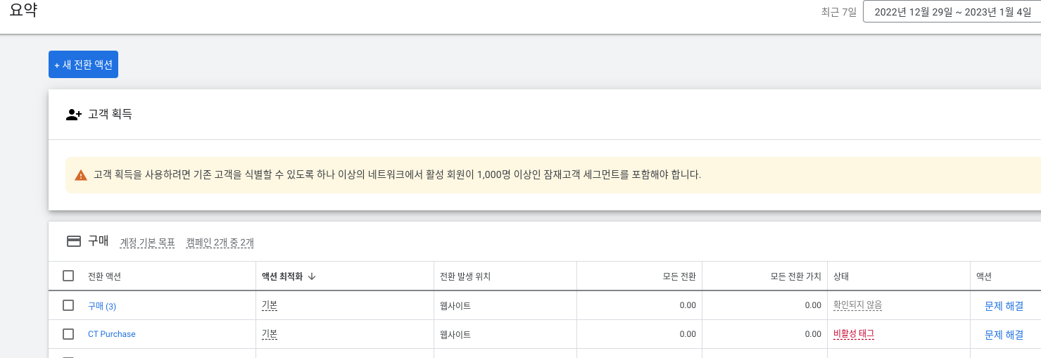 설정을 위해 먼저 구글애즈에서 전환을 설정합니다 (제공되는 전환의 종류에 따라 설정) -> 전환설정하기