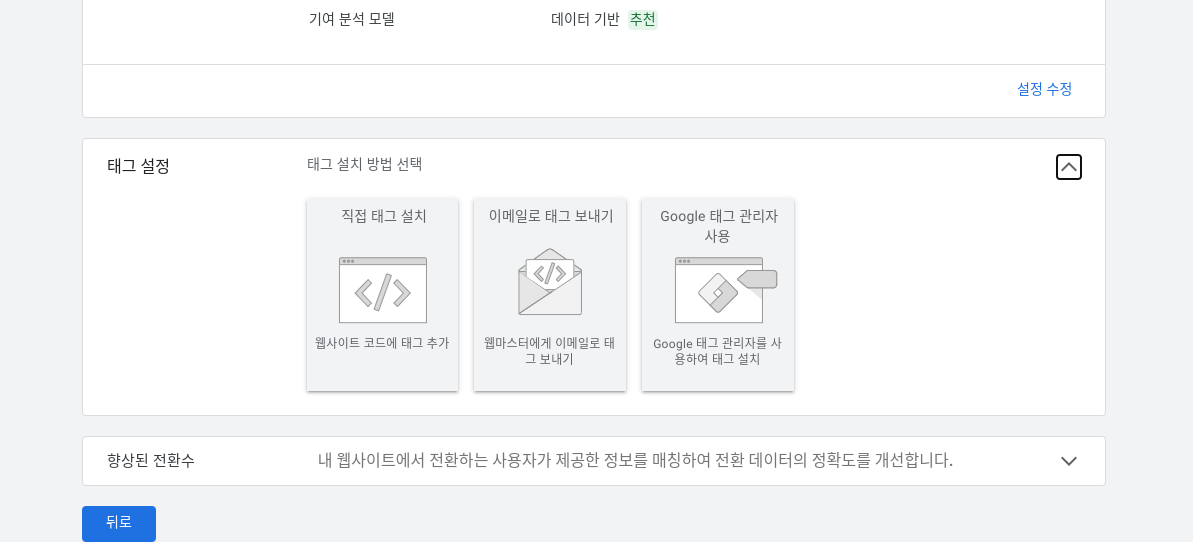 중간에 '태그설정' 박스 선택 후 직접설치 선택