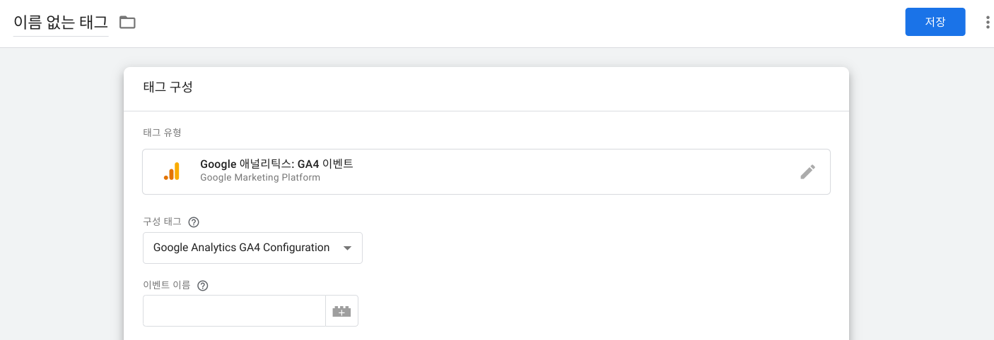 '태그' -> '새로 만들기' -> '태그 구성' -> 'Google 애널리틱스: GA4 이벤트' 선택