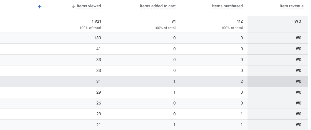 ★ 구매 items에 price는 필수는 아니지만 전자상거래 구매보고서의 'item revenue'의 경우 아이템 가격으로 활성화되므로 추가가 권장됩니다.