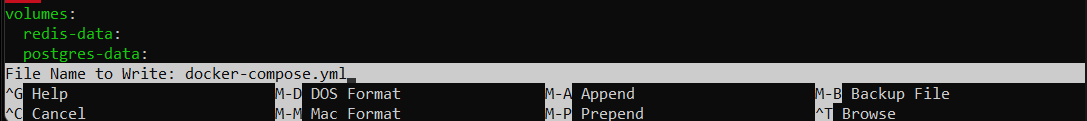 닥커 컴포즈 파일 생성을 위해 아래 커맨드를 실행하여 나노 편집기 열기 (리눅스 커맨드에서 붙여 넣기는 마우스 우클릭으로 합니다).