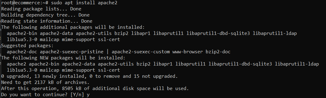 웹서버로 사용하기 위해 아파치를 설치합니다.