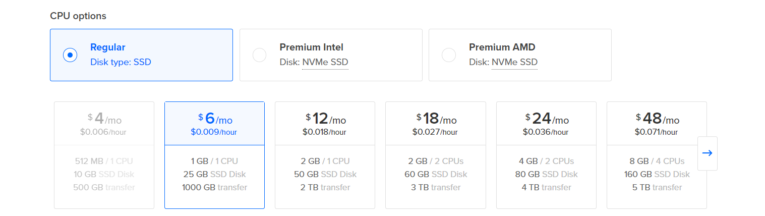 디지털 오션 계정가입 -> 만들기 -> 드롭렛 선택