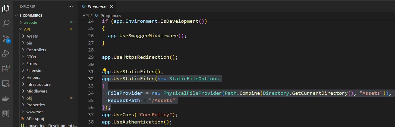 에이피아이 폴더에 에셋들을 담을 새 폴더를 만들고 wwwroot 폴더의 스태틱 파일들을 생성한 폴더로 이동