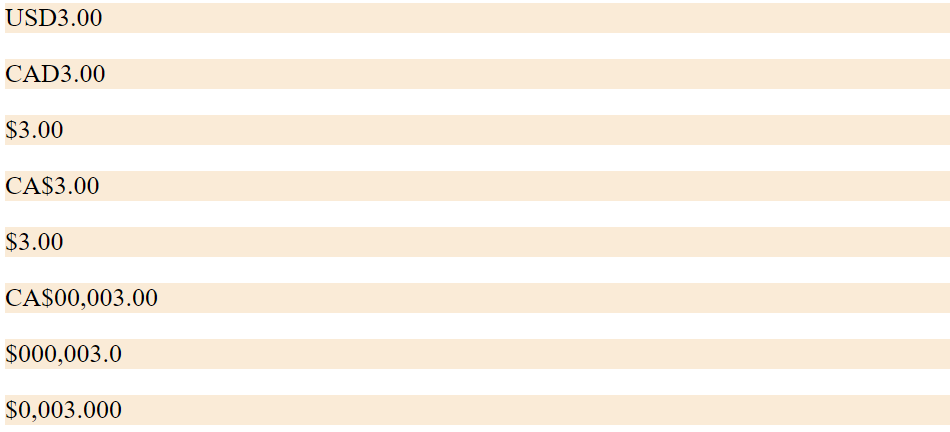 <p>{{ 3 | currency : 'CAD' }}</p>