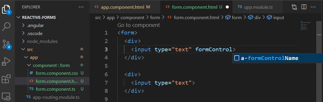 다음으로, 템플릿에서 폼을 폼그룹과 연결하고 지정된 폼컨트롤은 'formControlName' 속성을 통해 지정합니다.