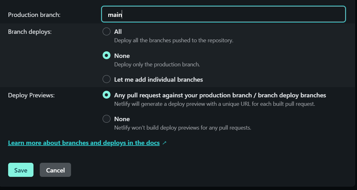 다음으로 주 브랜치를 지정합니다 (main 또는 master)