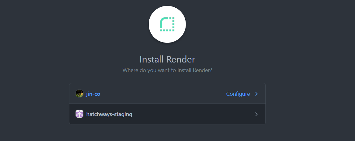 깃 또는 깃랩을 사용할 수 있으며 (여기서는 깃을 사용합니다) 해당 레포가 없는 경우 우측에 'Configure account'를 선택합니다.