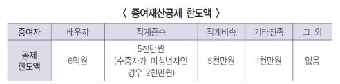 증여재산공제: 증여받는 자와 증여자가 밀접한 관계인 경우 관계에 따라 일정금액 공제. 금액산정은 수증자(받는 자) 기준