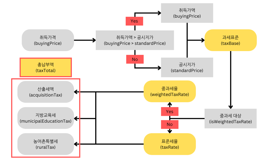 - 지방교육세: 취득세와 별도로 부과되는 세금으로 과세표준에 세율을 곱하여 산정