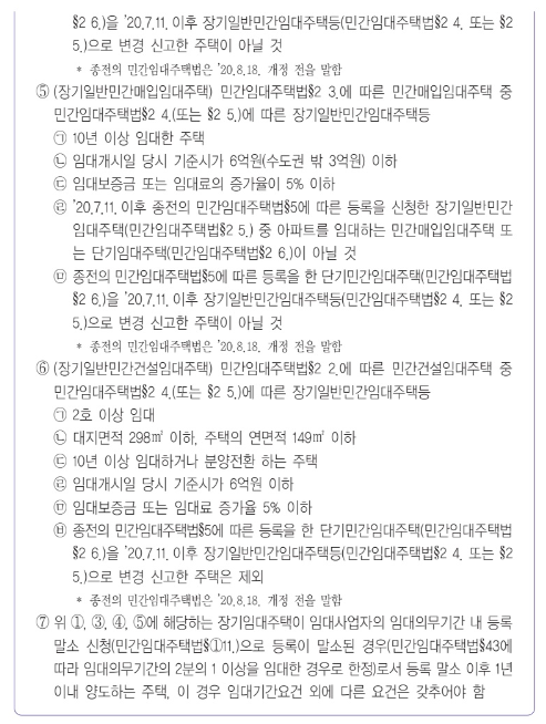 임대주택 1호 이상 4 이상 (장기일반임대주택은 10년 이상 - 2020년 8월 18일 이전 등록신청한 것은 8년 이상) 임대할 것