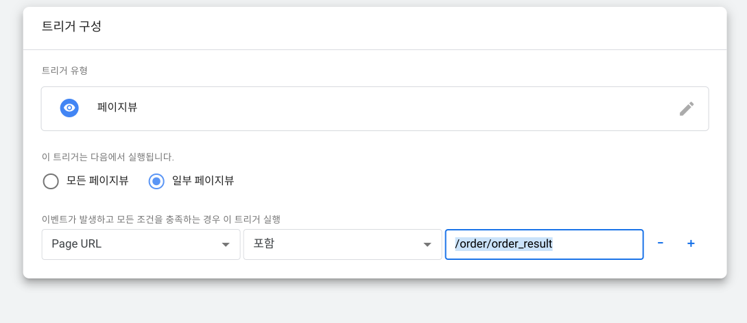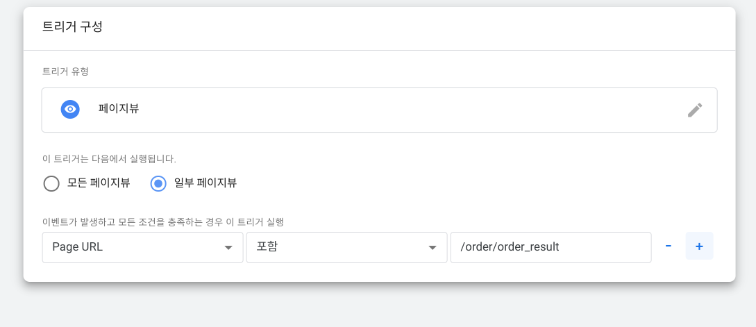 해당 상품에서만 전환이 일어나도록 조건을 추가하기 위해 '+'아이콘 선택