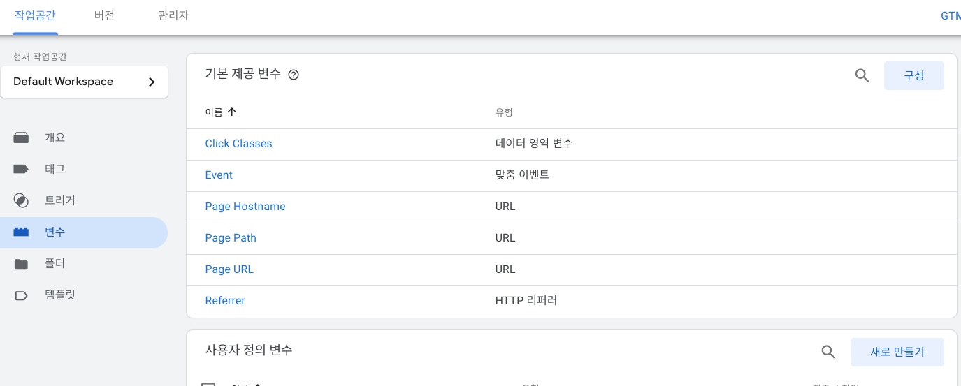 태그관리자 해당 컨테이너에서 '작업공간' -> '태그' -> '새로 만들기' 순으로 선택