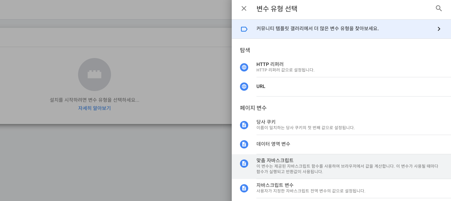 먼저, 상품별로 전환을 발생시키기 위해 상품구분 코드 설치가 필요한데요. '변수'를 선택하고 사용자 정의 변수 항목에 '새로 만들기'를 선택합니다. 상품구분은 하나의 코드를 설치하고 태그에서 상품 아이디로 구분하는 방식으로 구현할 것이므로 한 번만 만들면 됩니다.