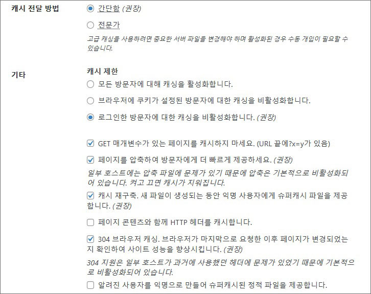 W3 Total Cache 설정하기