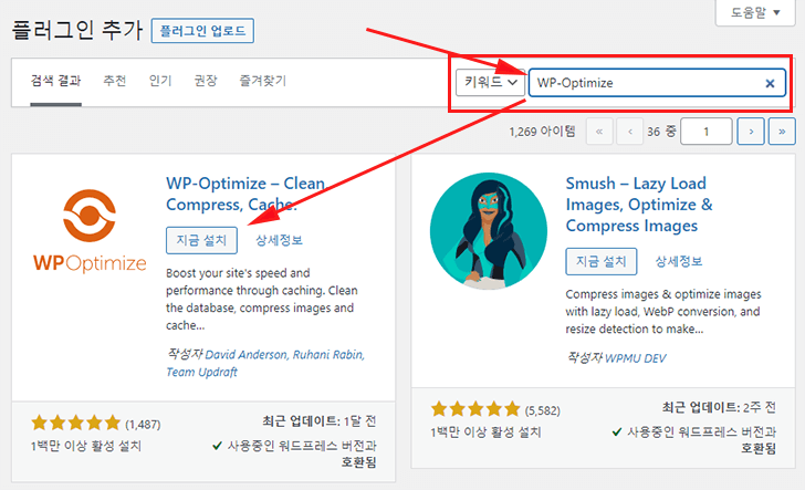WP-Optimize 플러그인 활용하기